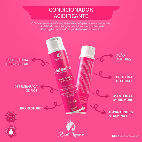O Condicionador Acidificante Malemolência Capilar promove sedosidade, maleabilidade e condicionamento profundo da fibra capilar, prevenindo a opacidade e o ressecamento.