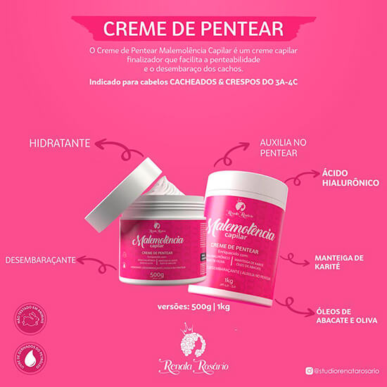 O Creme de Pentear Malemolência Capilar é um creme capilar finalizador que facilita a penteabilidade e o desembaraço dos cachos.