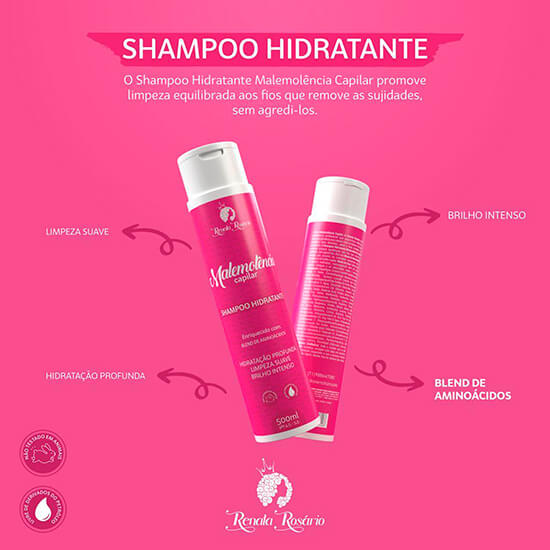 O Shampoo Hidratante Malemolência Capilar promove limpeza equilibrada aos fios que remove as sujidades, sem agredi-los.
